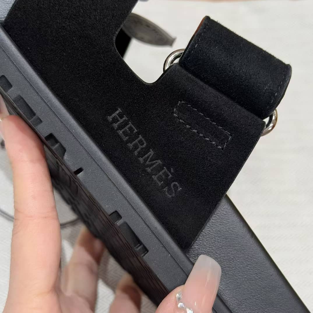 Sandales Chypre Hermès Noir Daim
